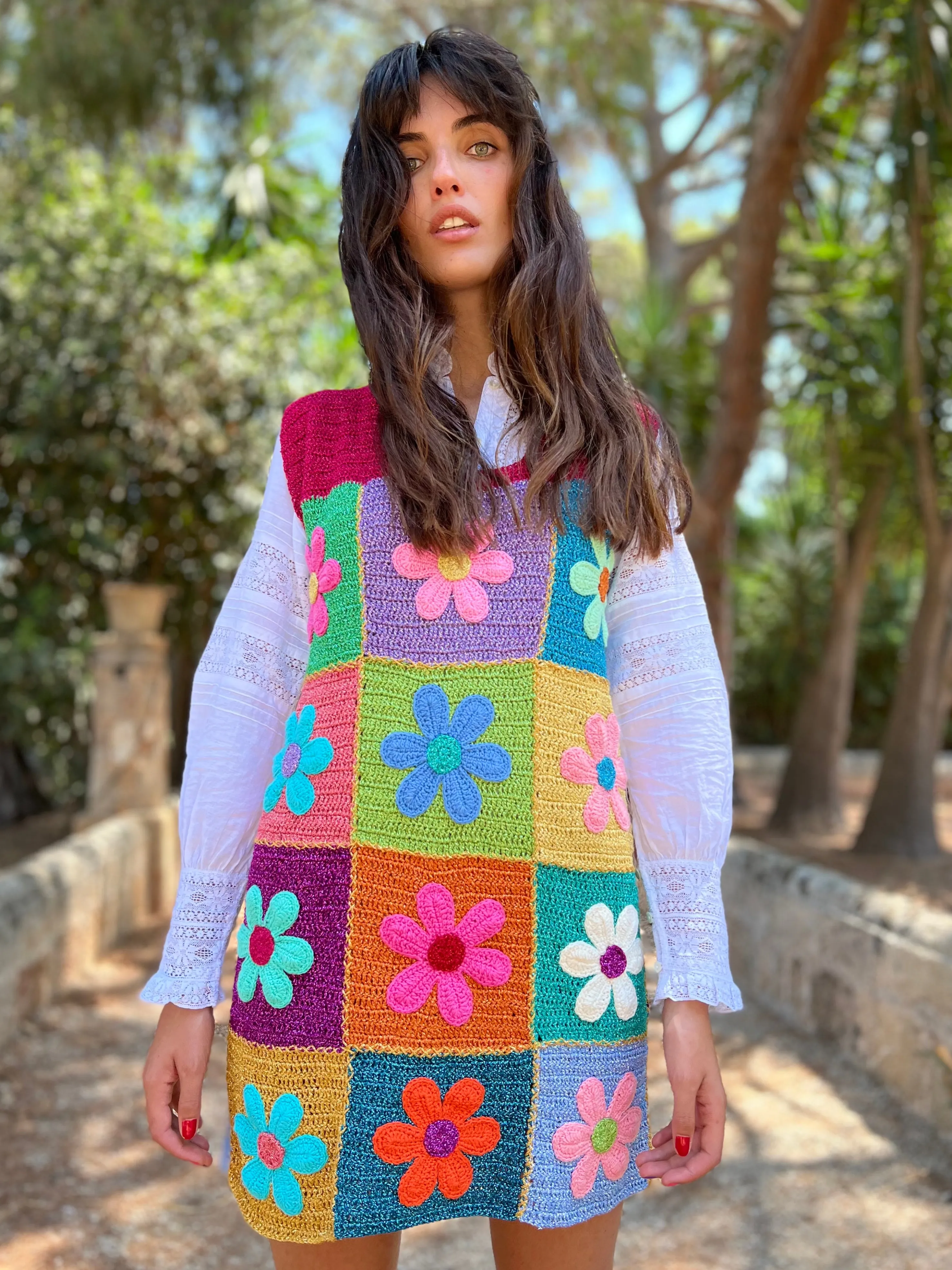 Rose Carmine Dresses-FLOWERS PATCHWORK DRESS NO SLEEVES