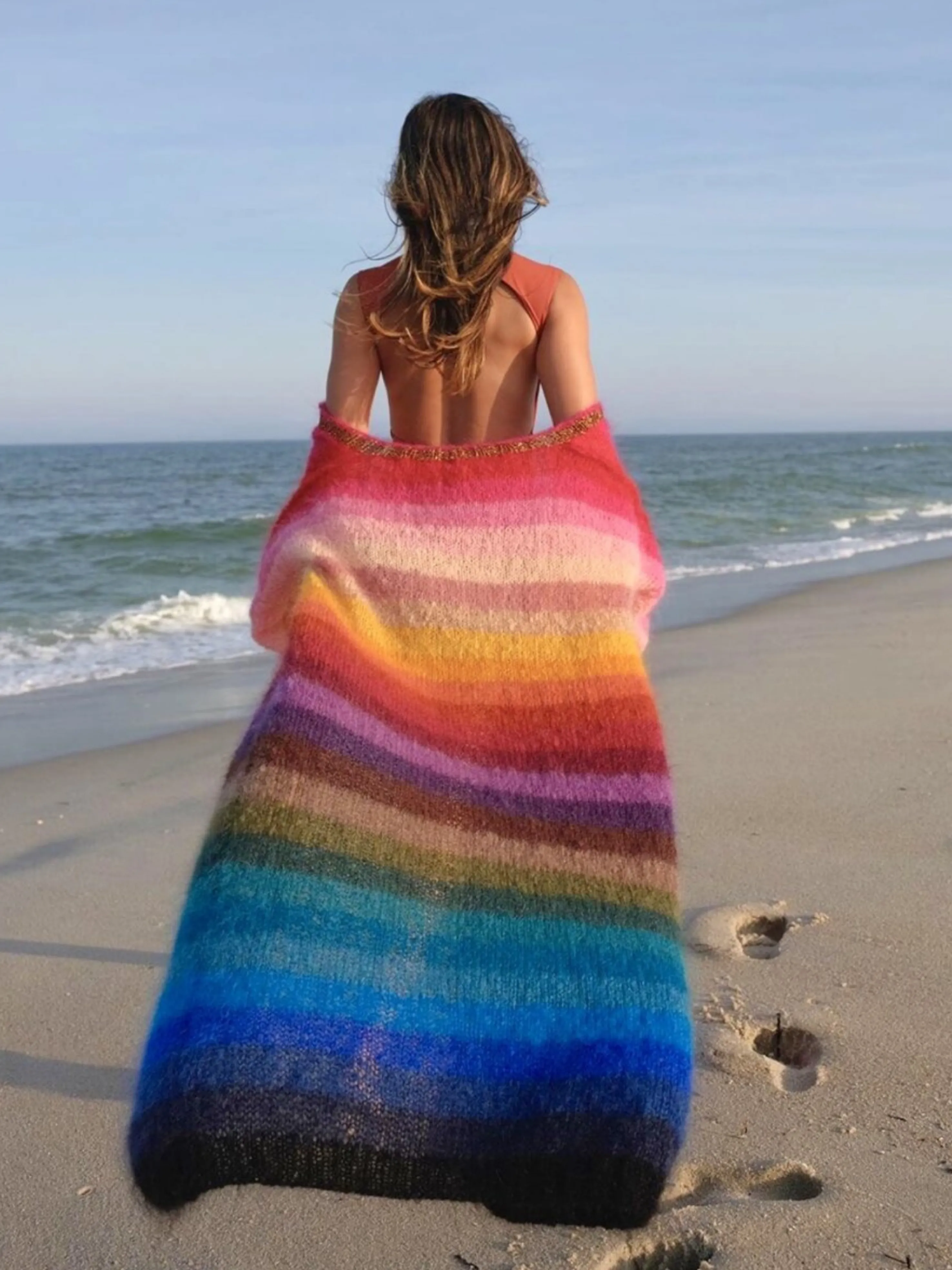 Rose Carmine Iconics|Coats-COAT STRIPES MULTICOLOR
