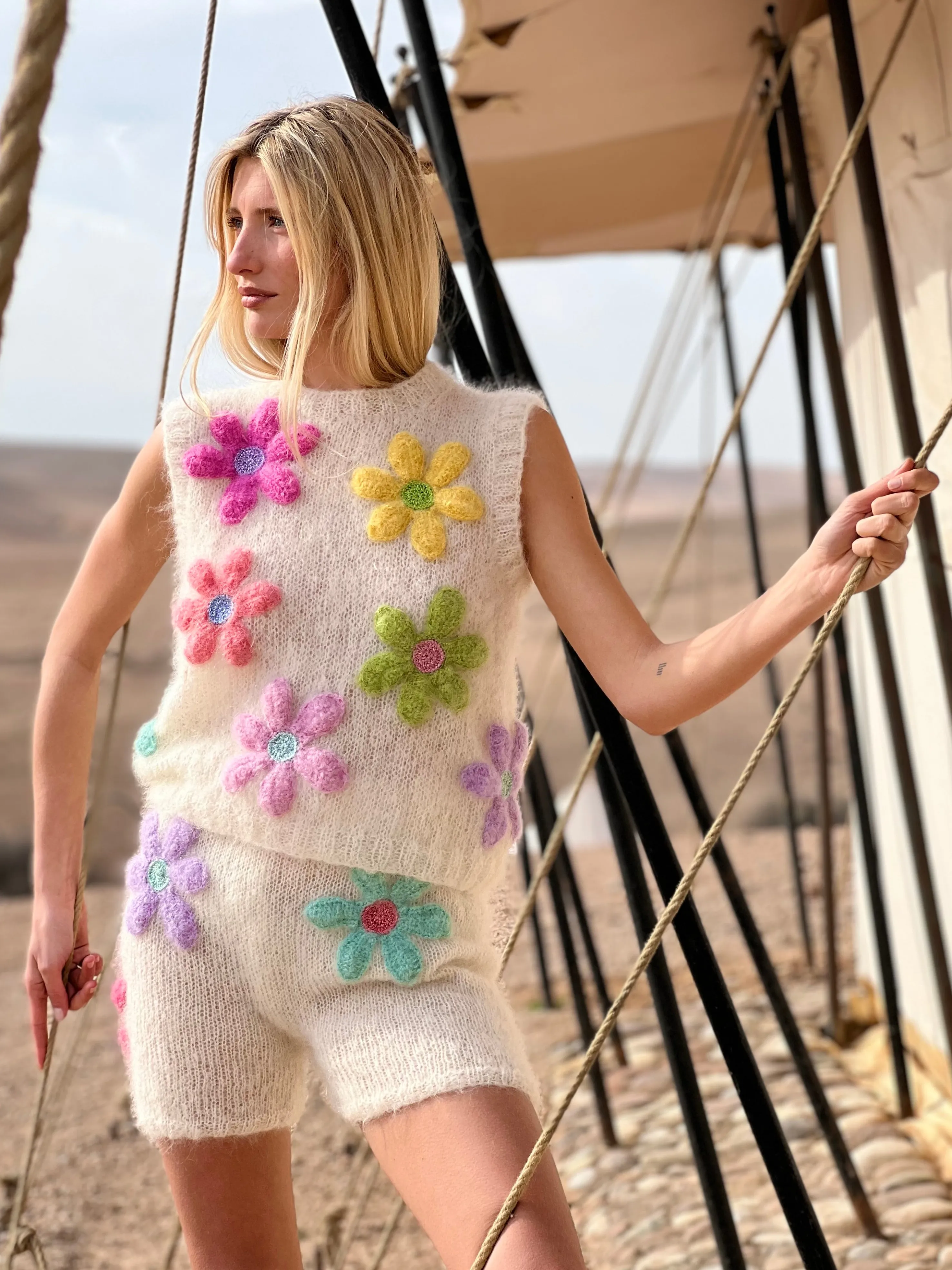 Rose Carmine Iconics|Tops-TOP FREE FLOWERS ECRU (Fall / Winter)