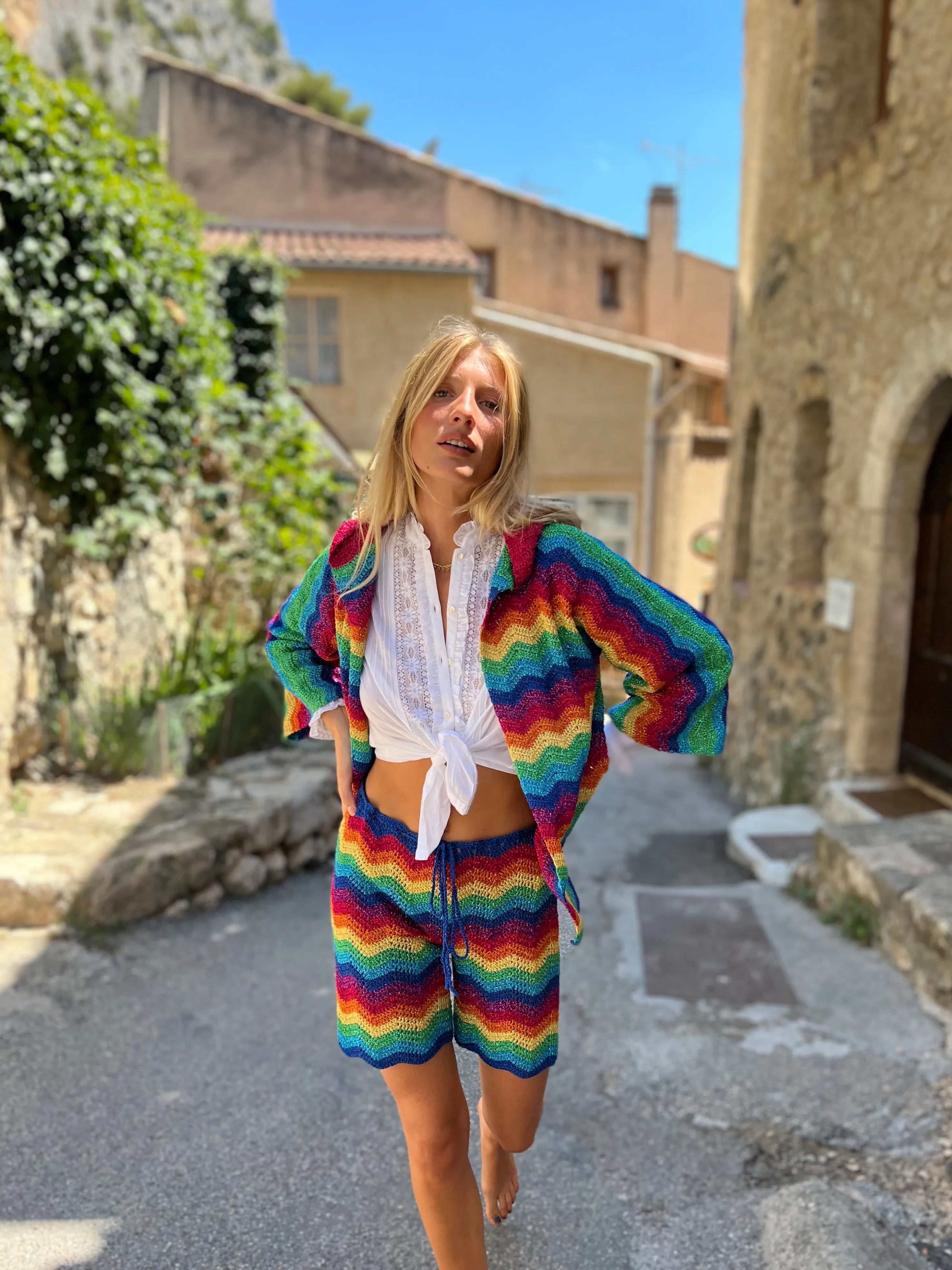 Rose Carmine Jackets-MULTICOLOR WAVE LUREX HOODIE LITTLE JACKET