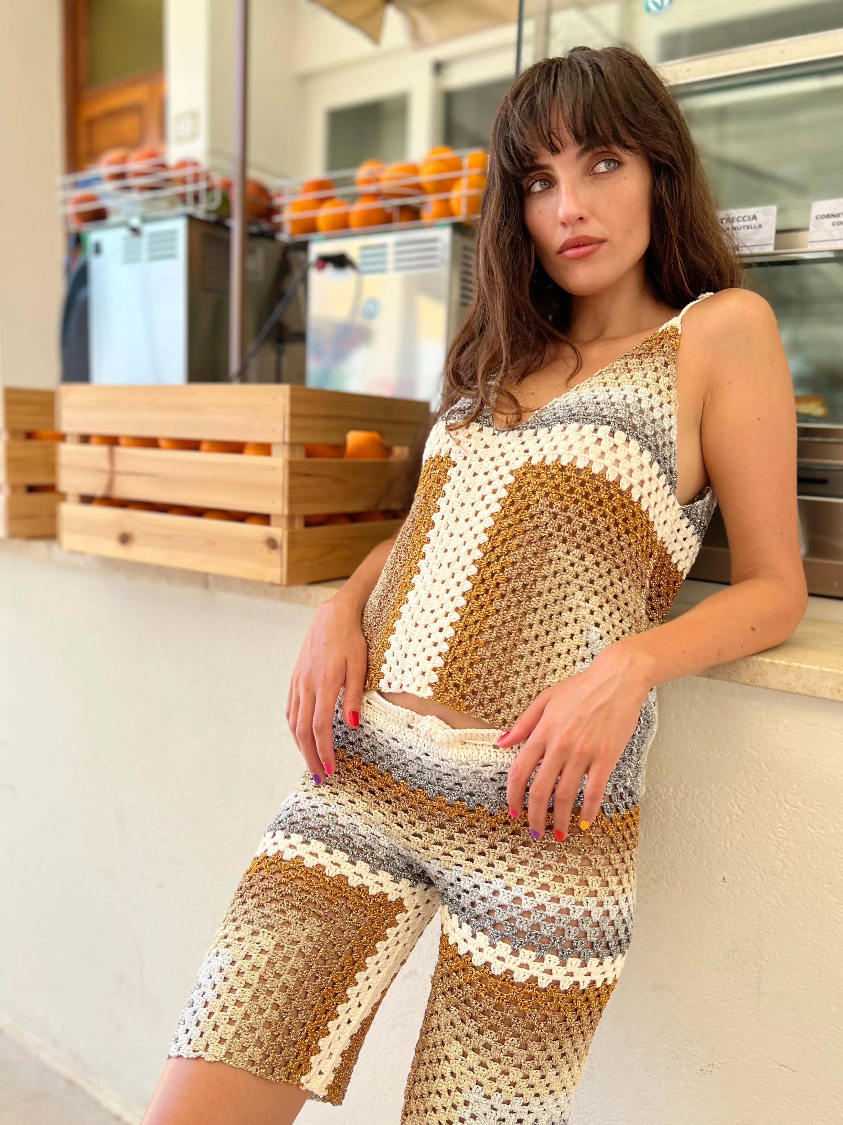 Rose Carmine Tops-GOLD & SILVER RAINBOW TOP THIN STRAPS