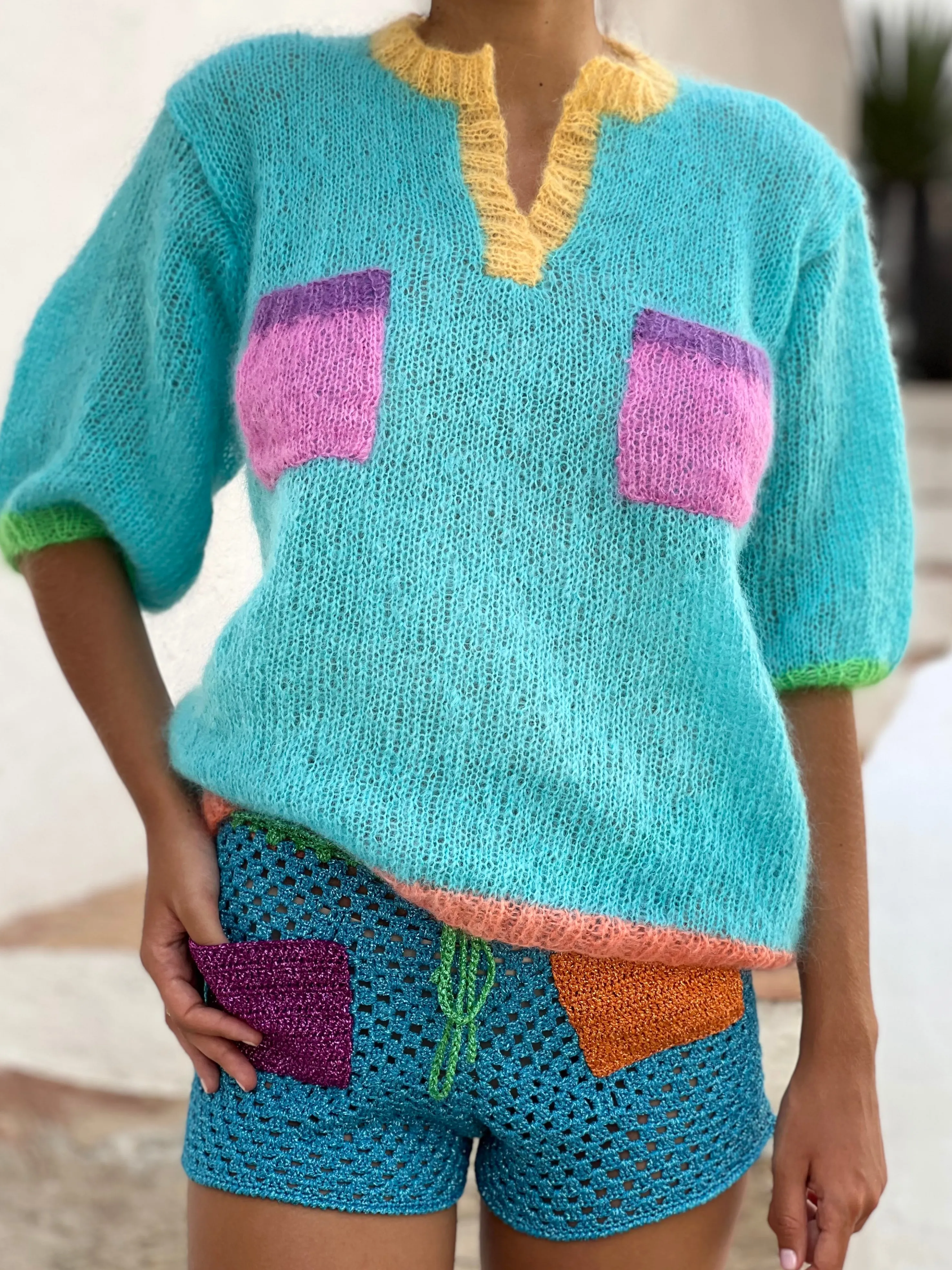 Rose Carmine Bottoms-SHORTS CANDY TURQUOISE