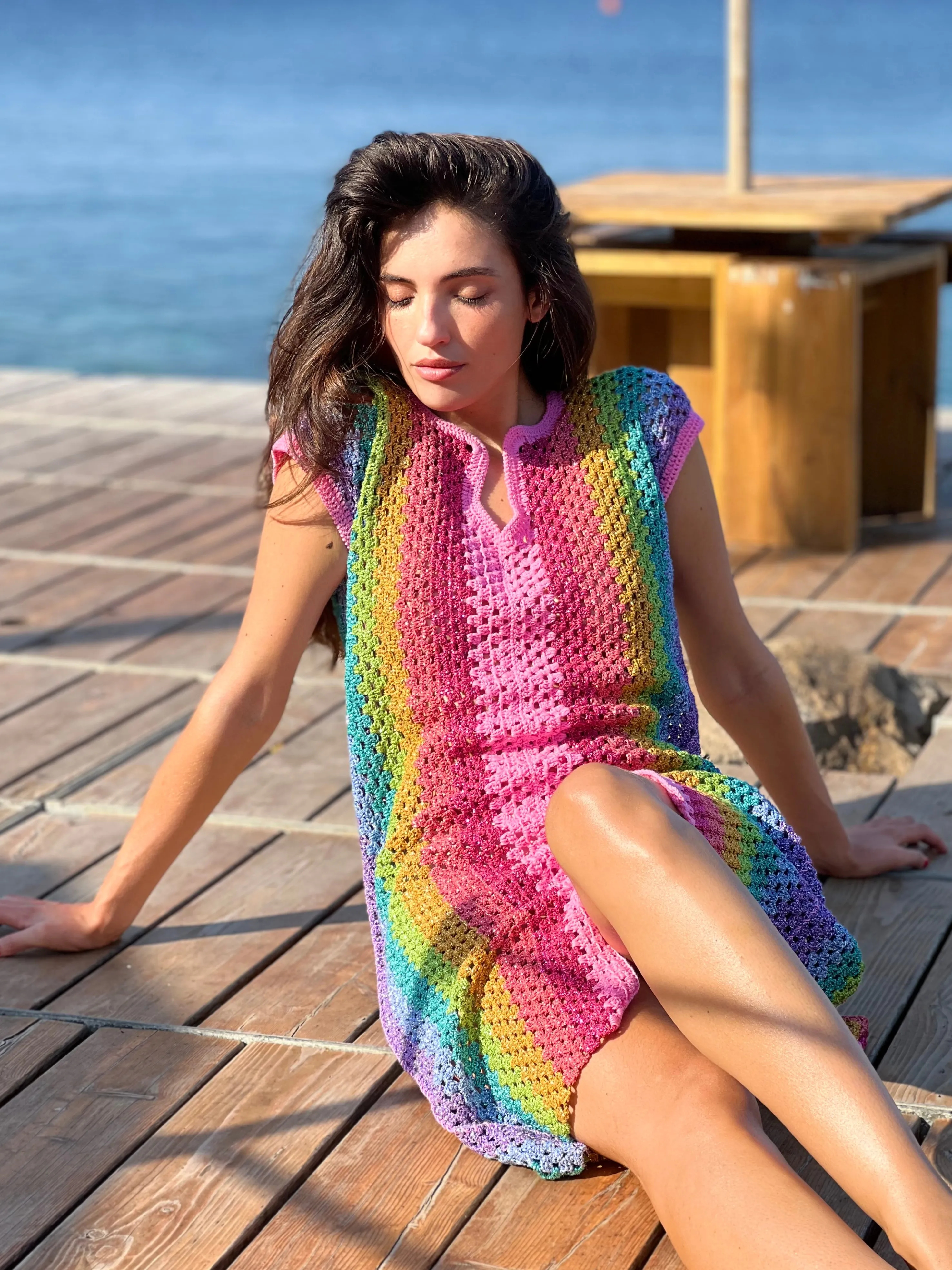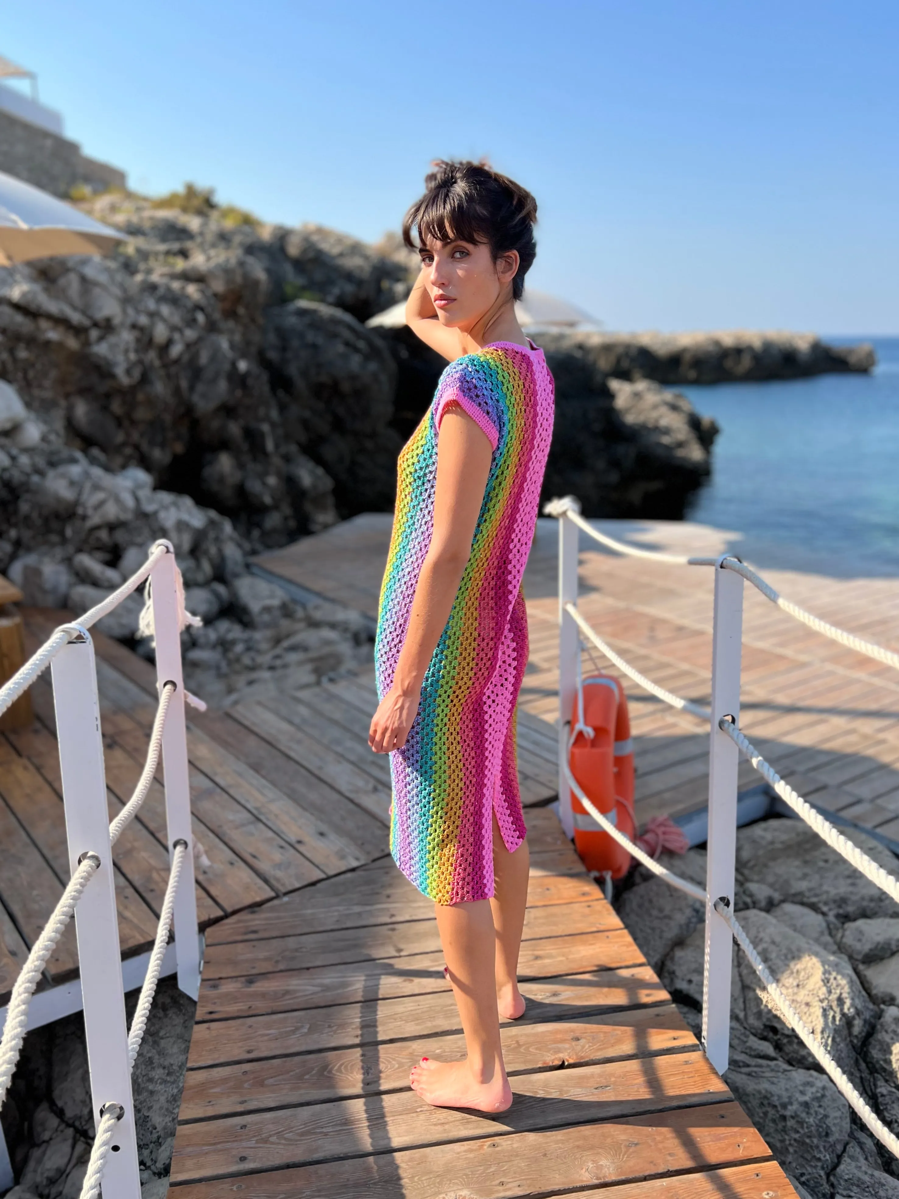 Rose Carmine Dresses-PINK RAINBOW DJELABA DRESS