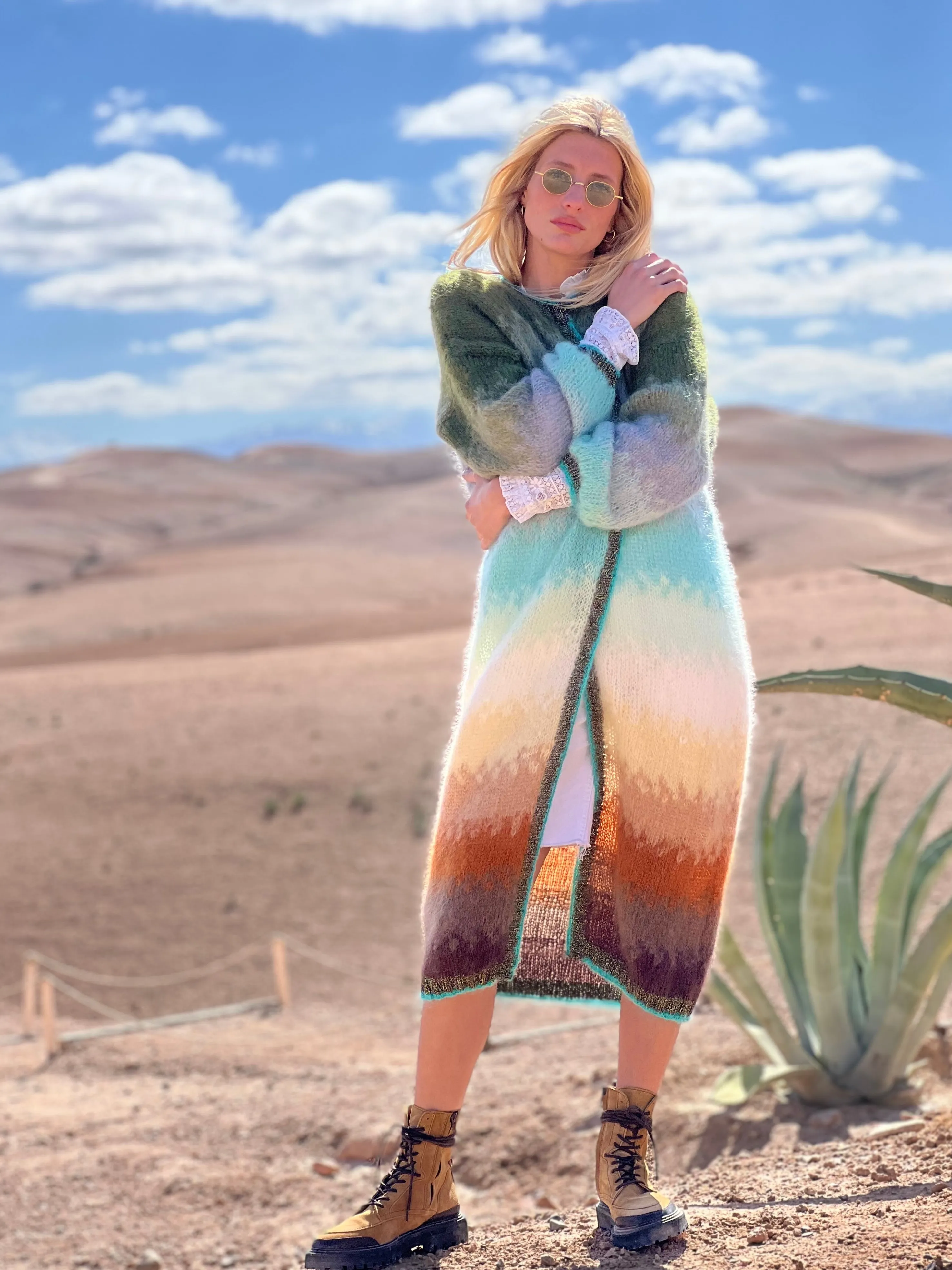 Rose Carmine pieces have a unique charm showing a remarkable craftsmanship. They are entirely hand-made by our knitters, which may result in slight differences from one piece to another.