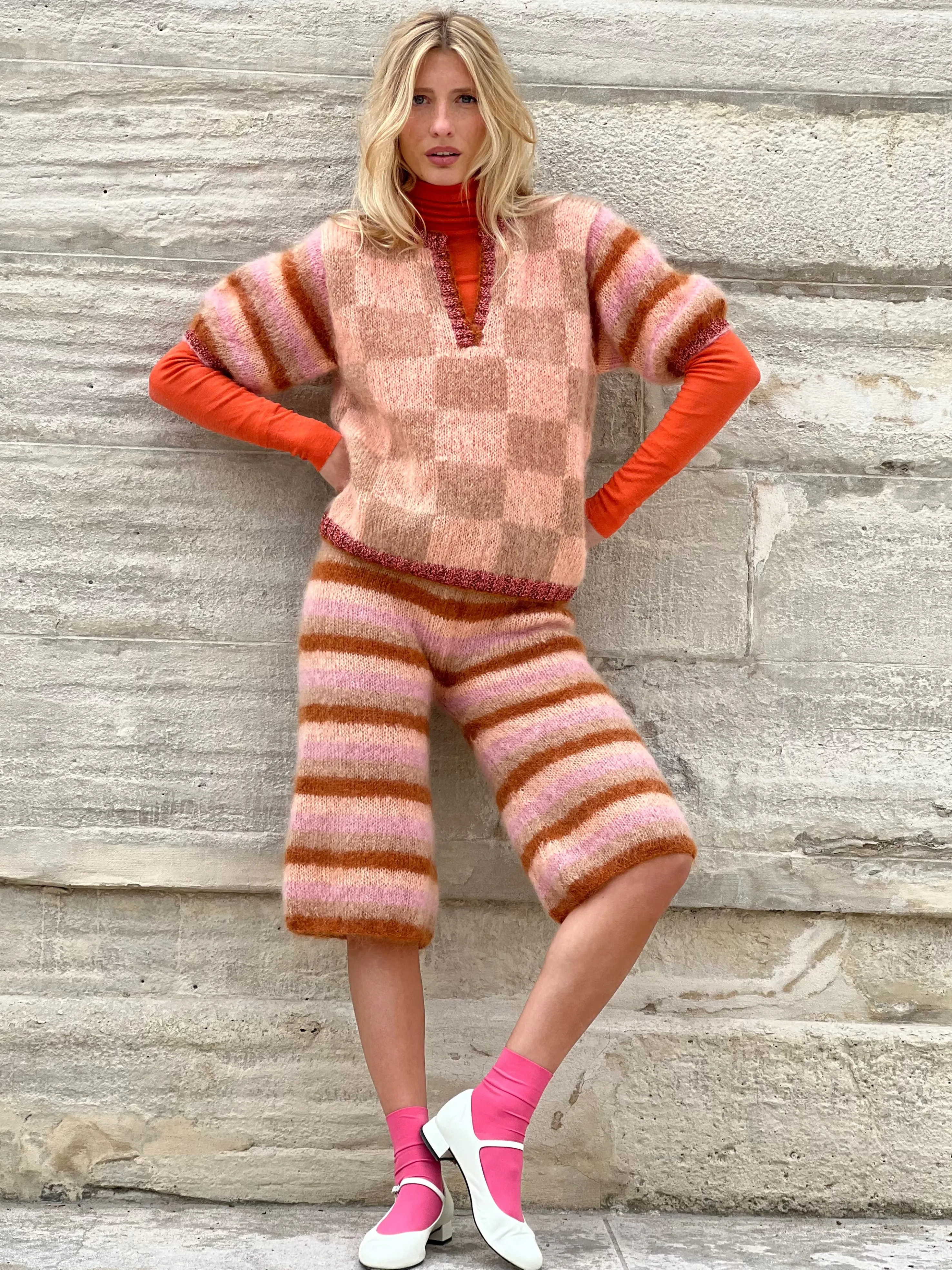 Rose Carmine pieces have a unique charm showing a remarkable craftsmanship. They are entirely hand-made by our knitters,…