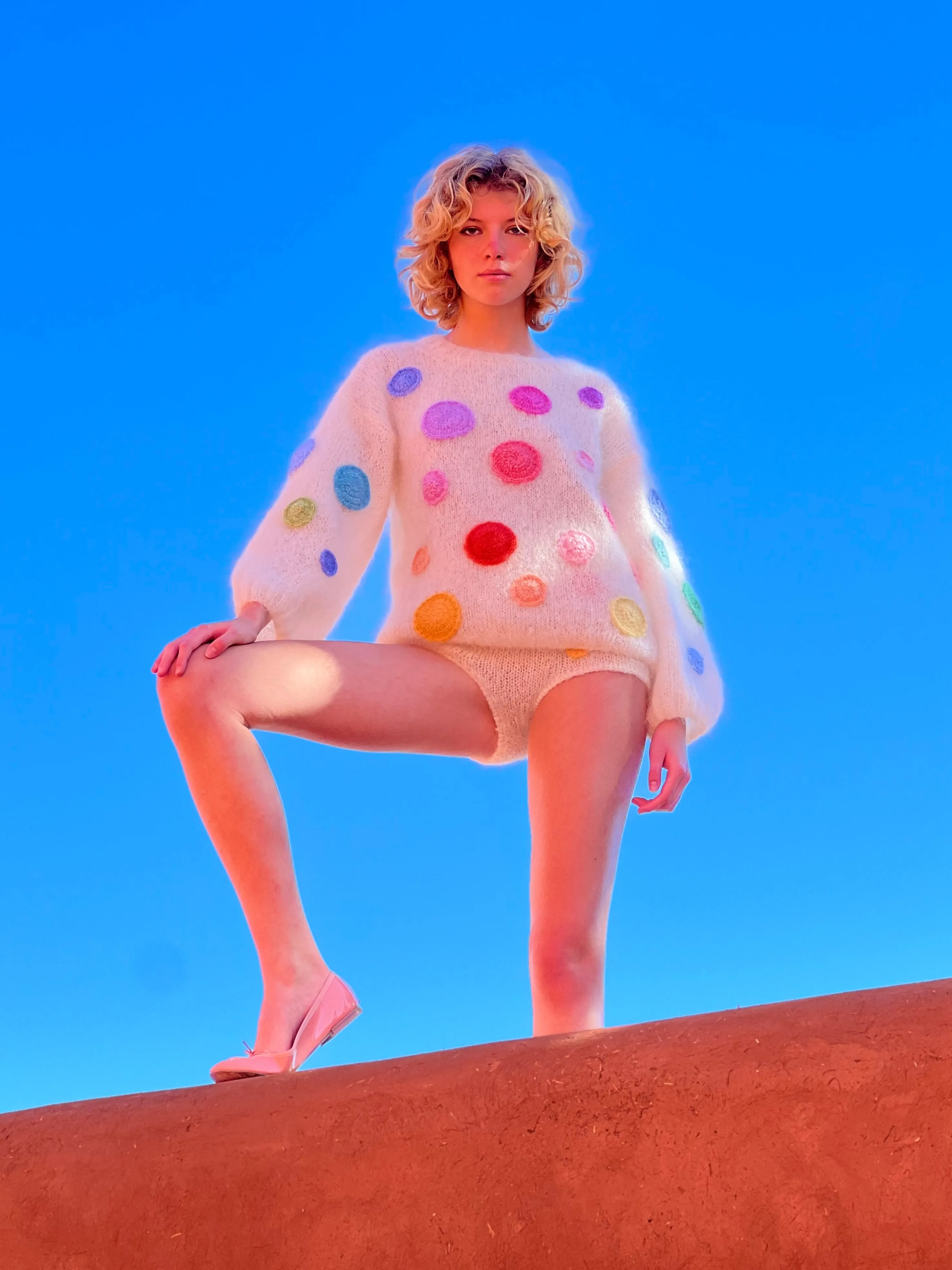Rose Carmine pieces have a unique charm showing a remarkable craftsmanship. They are entirely hand-made by our knitters, which may result in slight differences from one piece to another.