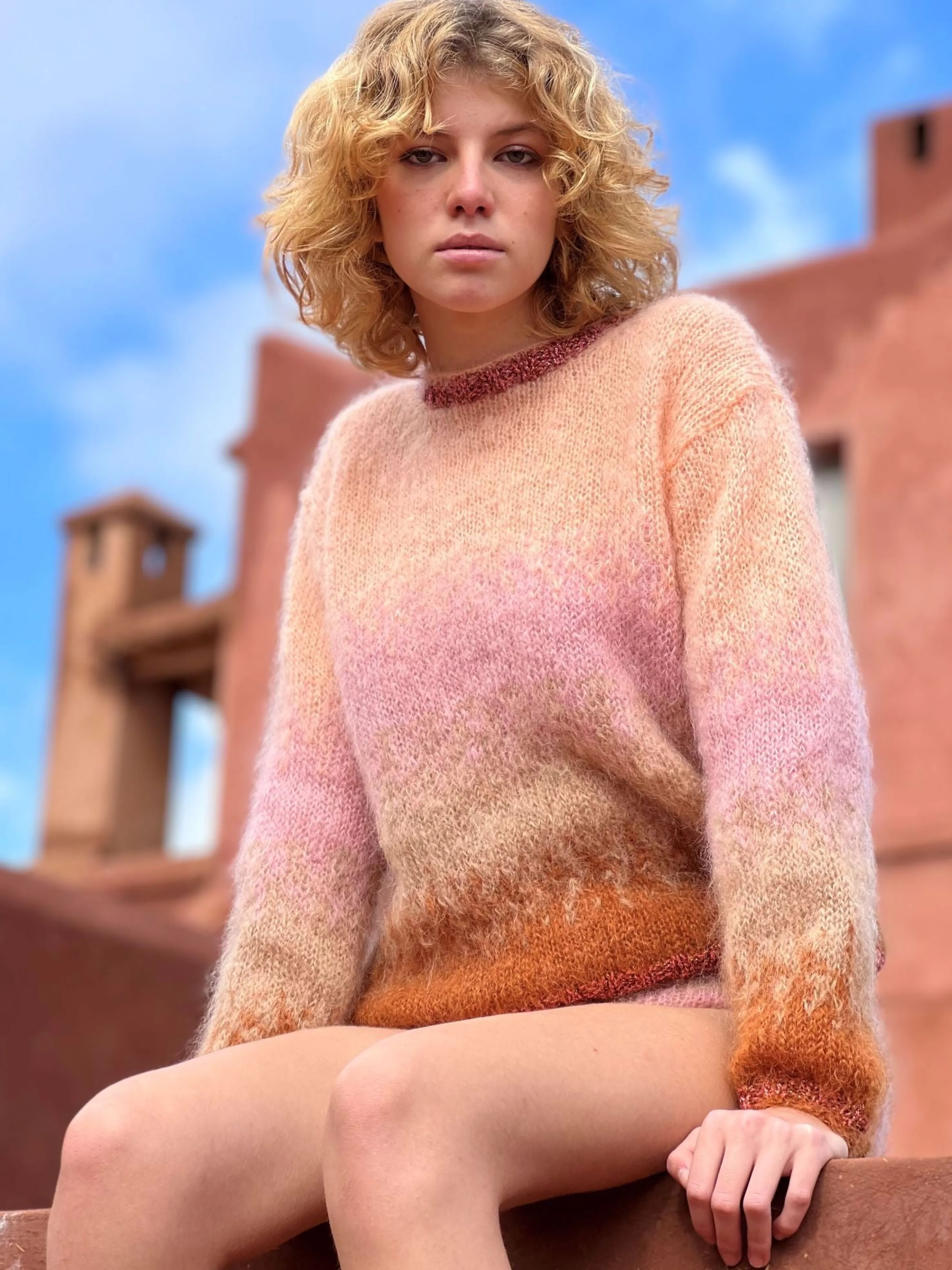 Rose Carmine pieces have a unique charm showing a remarkable craftsmanship. They are entirely hand-made by our knitters, which may result in slight differences from one piece to another.