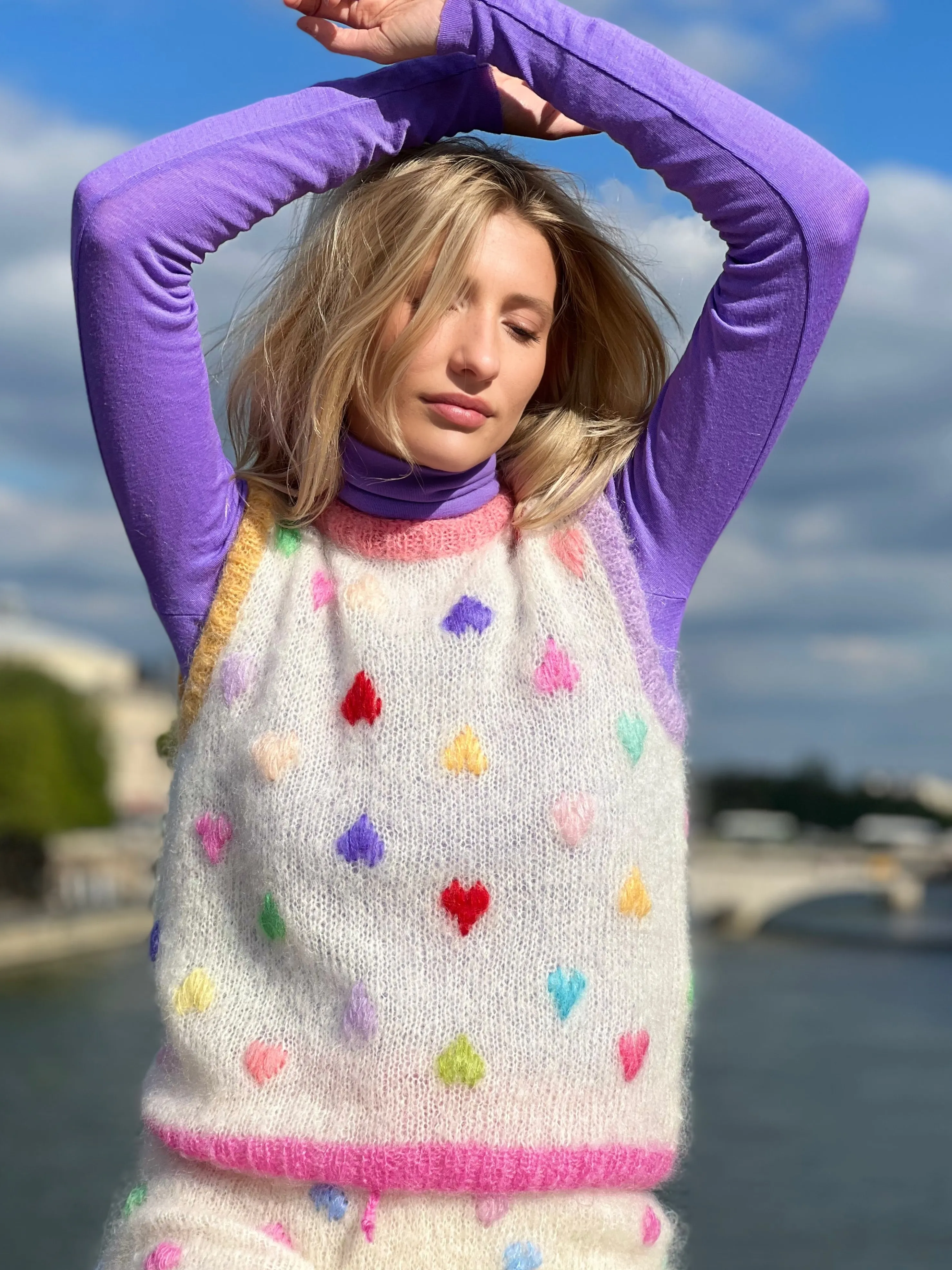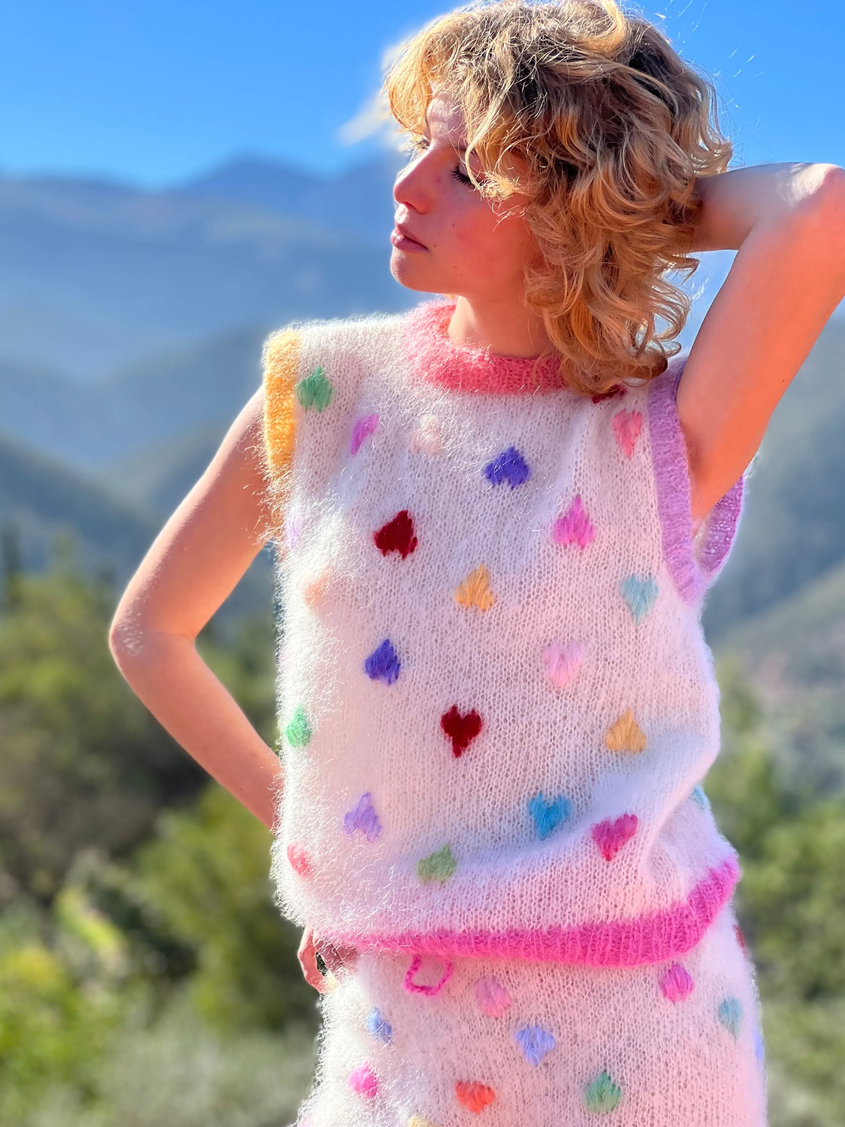 Rose Carmine pieces have a unique charm showing a remarkable craftsmanship. They are entirely hand-made by our knitters, which may result in slight differences from one piece to another.